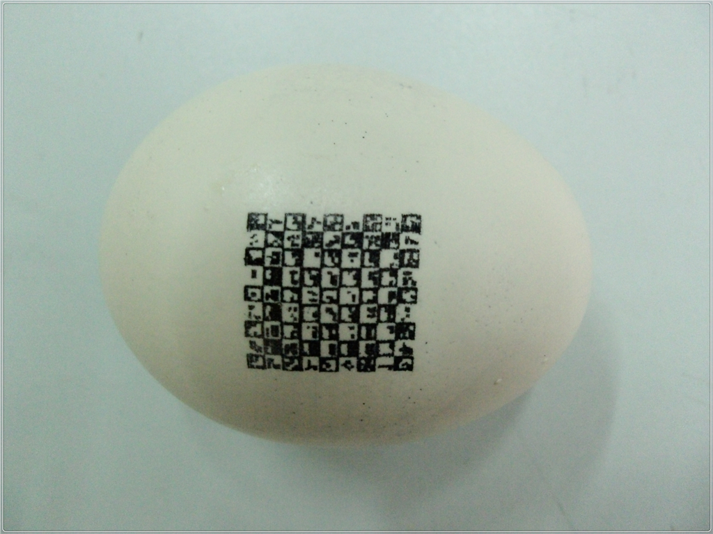 高速整盤噴印方式,無論雞蛋何種排列都可以自動(dòng)識(shí)別并直接在蛋品上標(biāo)明出廠日期及防偽標(biāo)識(shí)、綠色食品標(biāo)識(shí),安全、環(huán)保、健康。消費(fèi)者直接購買即可方便找到名牌蛋品。提高產(chǎn)品自身形象,讓每個(gè)蛋品都有自己的“身份證”!配電腦控制專用梭式傳送裝置,快速、高效、準(zhǔn)確!可選用食用與普通油墨,可選擇噴印黑、紅、藍(lán)等顏色。大字符、小字符以及微字符通用機(jī)型;點(diǎn)陣字與實(shí)體字通用機(jī)型;可噴印所有文字及字型;可噴印商標(biāo)及各種圖案;可噴印各種條形碼;